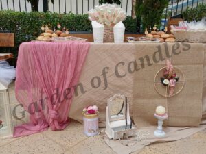 Αναλαμβάνουμε την σημαντικότερη ημέρα της ζωής σας! Ο στολισμός της εκκλησίας, της κολυμπήθρας, το candy – salty bar, drink bar, το μοίρασμα της μπομπονιέρας. Η εξυπηρέτηση οι τομείς στους οποίους ειδικευόμαστε για να σας προσφέρουμε το καλύτερο αποτέλεσμα. Η έμπειρη ομάδα μας μπορεί να αναλάβει την επιμέλεια και την υλοποίηση της διακόσμηση του γάμου σας και της βάπτισης του μικρού σας.